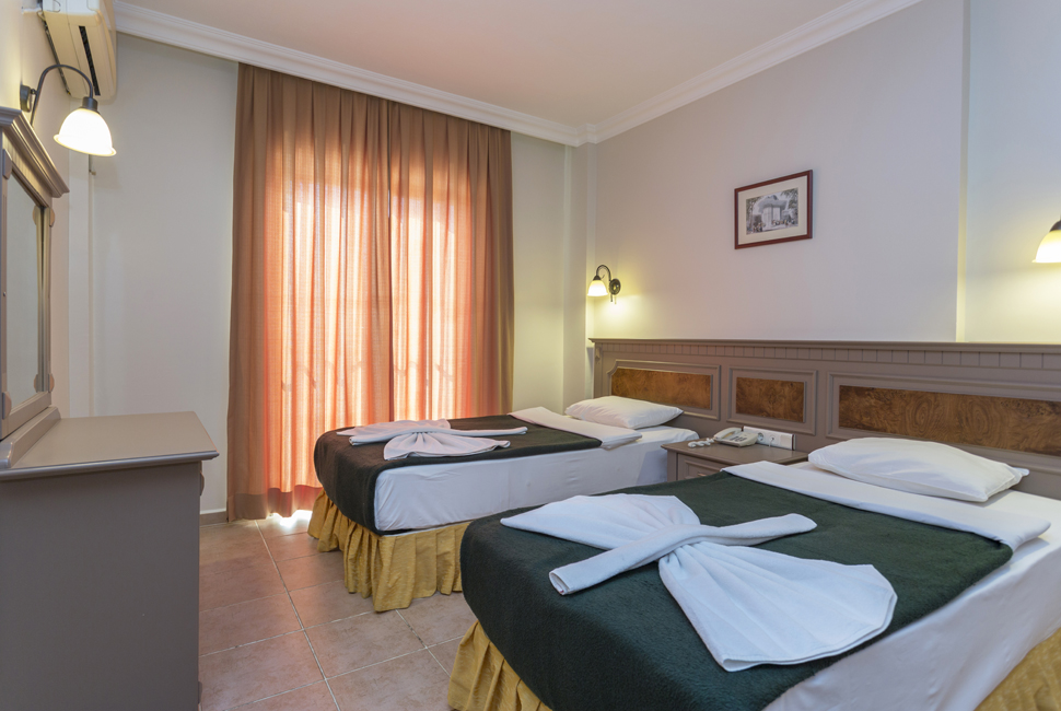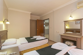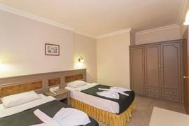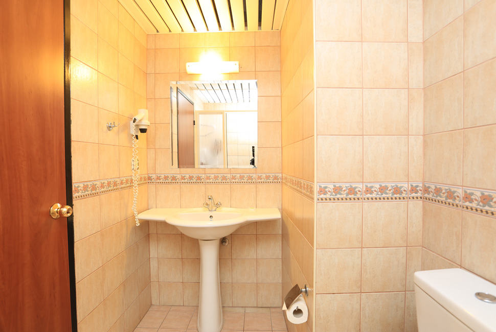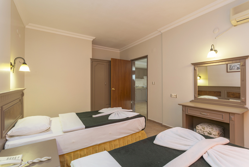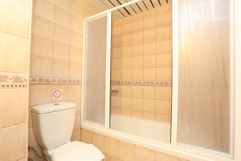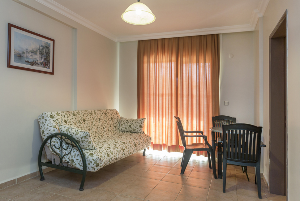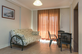 One Bedroom Apartments have separate double or twin beds in bedroom, living room with double sofa bed, all of an equally decorated with a balcony and pool view. All room are equipped with a well-furnished kitchen area and bath/shower room. Other room facilities include: kettle, hair dryer, fridge, 2 ring electric hob, direct dial telephone and air conditioning. The A Block complex boasts a high standard of health, safety and security, with an elevator and open corridors suitable for those with walking difficulties. (Baby-cot can be added free of charge).